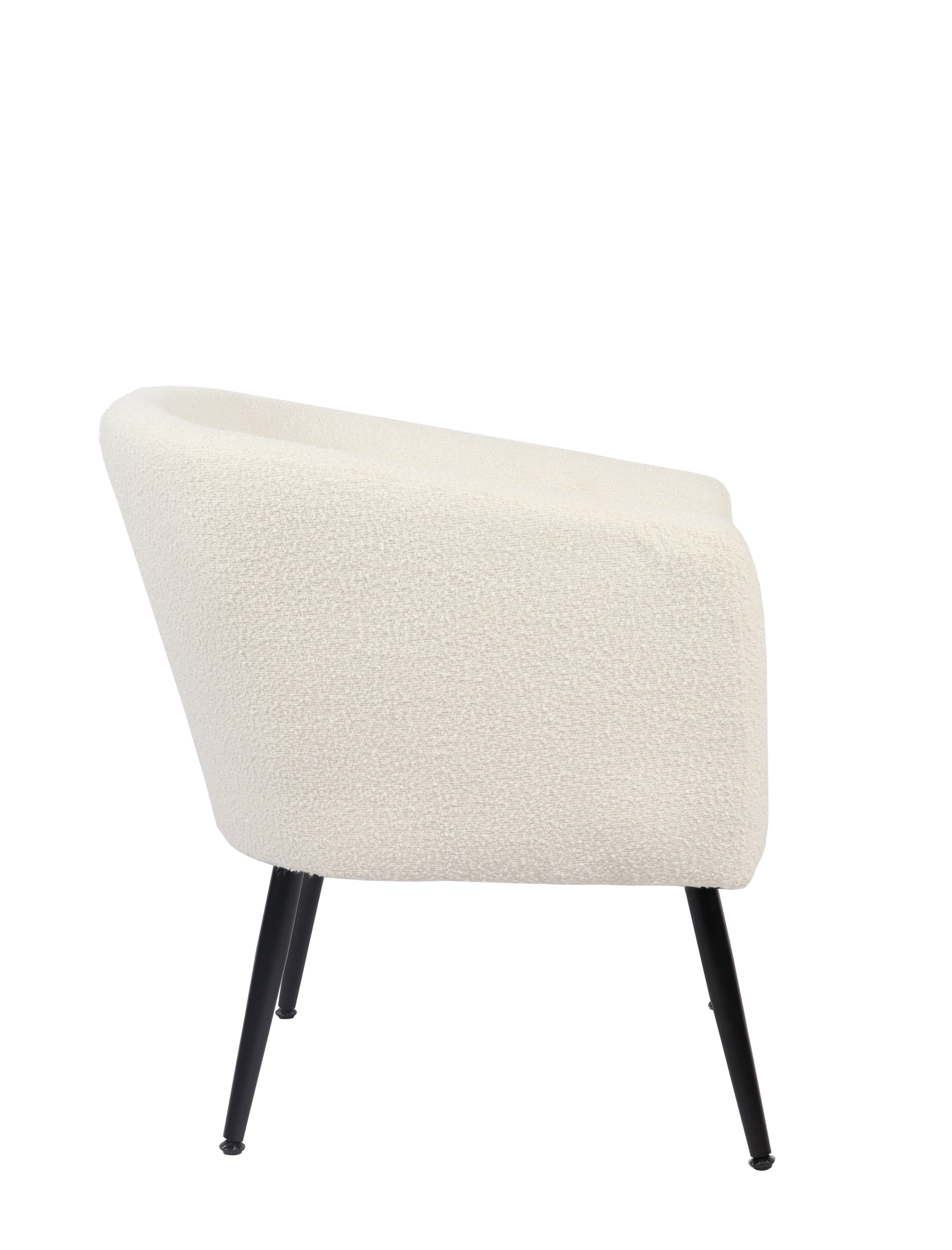 La butaca circular Melrose combina confort y estilo moderno, ideal para cualquier salón, dormitorio o rincón de lectura. Su diseño envolvente ofrece un asiento cómodo, mientras que las patas metálicas negras aportan estabilidad y elegancia.